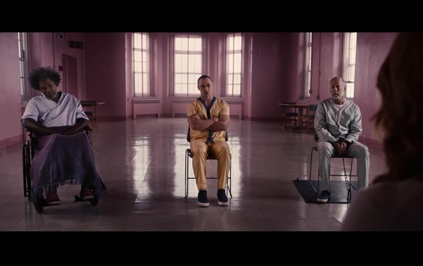 Фото: Скриншот В главных ролях в фильме «Стекло» снялись Сэмюэл Л. Джексон, Джеймс МакЭвой и Брюс Уиллис
