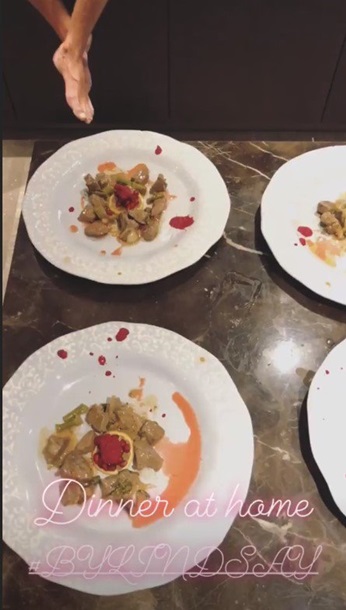 Показала модель и другие вкусности на своем столе. Приготовила ли звезда еду сама, или ей в этом помогали она не написала.