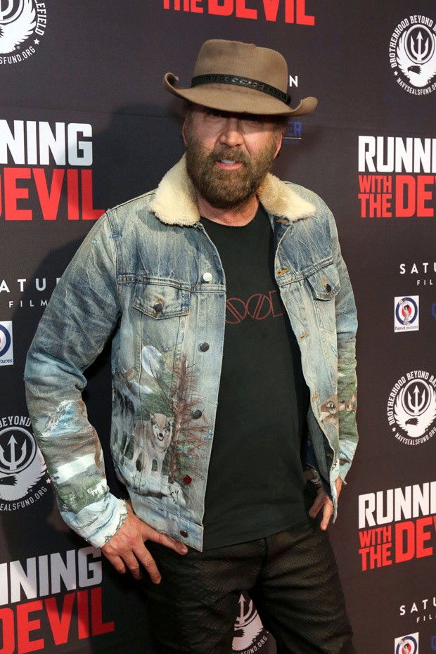 Николас Кейдж, появился на премьере своего нового фильма «Бег с дьяволом» с густой растительностью на лице и ковбойской шляпе, что сделало его практически неузнаваемым для публики.