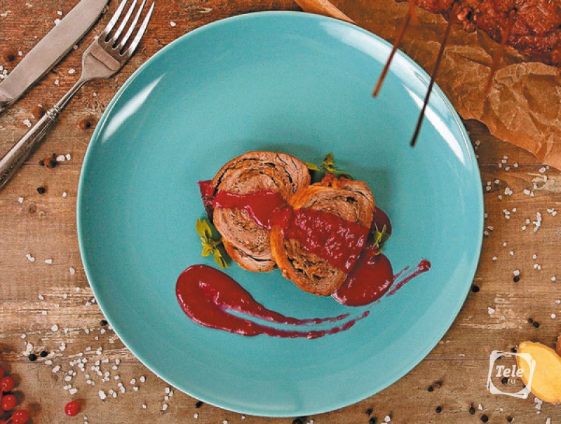 Рулет из телятины с калиновым соусом от Александра Бельковича